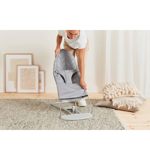 Leżaczek BabyBjorn zapewnia Twojemu dziecku przytulne miejsce do zabawy i odpoczynku. Porusza się dzięki naturalnym i spontanicznym ruchom dziecka. Dziecko bujając się rozwija zdolności motoryczne oraz równowagę w całkowicie naturalny dla siebie sposób. Młodsze dziecko można delikatnie i cicho kołysać ręką lub stopą.