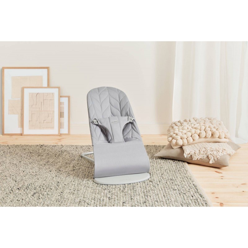 BabyBjorn Bliss - leżaczek, bujaczek, krzesełko | Jasnoszary Woven Petal Quilt
