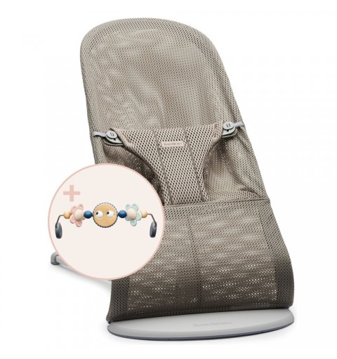 BabyBjorn Bliss - leżaczek, bujaczek, krzesełko | Mesh Szary Beż + Zabawka Googly Eyes Pastels