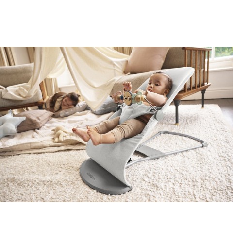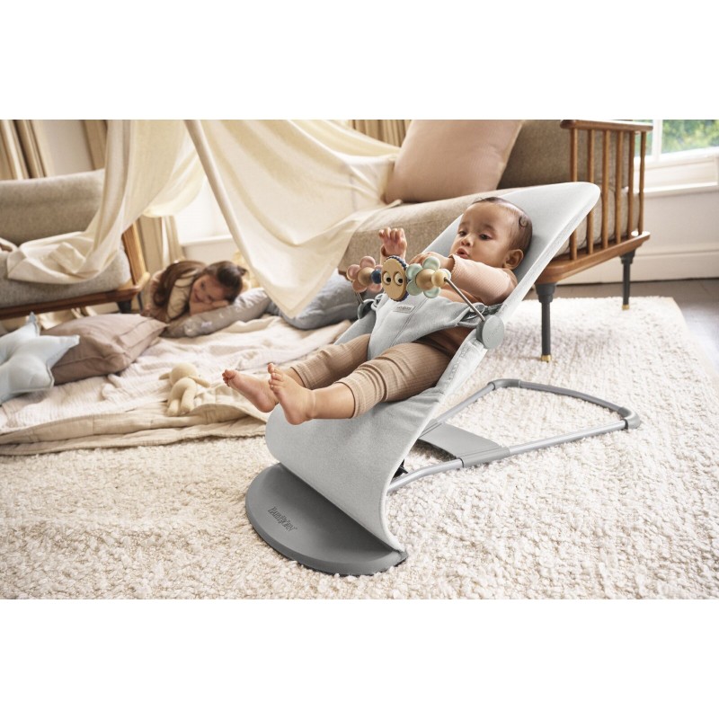 Leżaczek BabyBjorn zapewnia Twojemu dziecku przytulne miejsce do zabawy i odpoczynku. Porusza się dzięki naturalnym i spontanicznym ruchom dziecka. Dziecko bujając się rozwija zdolności motoryczne oraz równowagę w całkowicie naturalny dla siebie sposób. Młodsze dziecko można delikatnie i cicho kołysać ręką lub stopą.