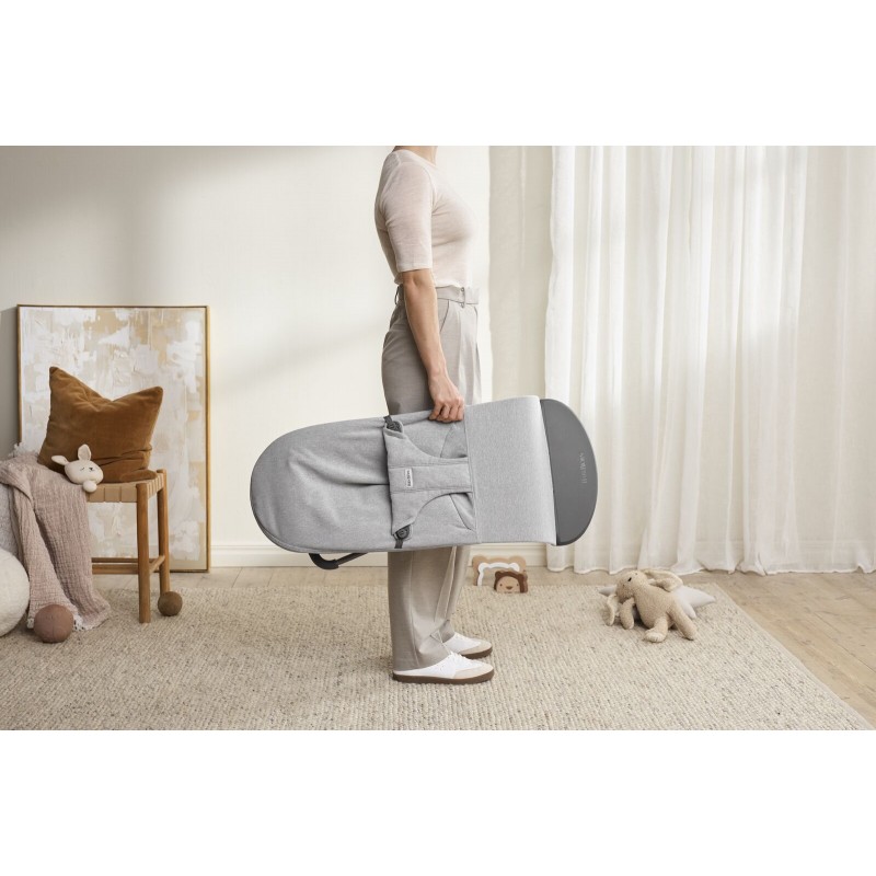 Dzięki dwustronnemu poszyciu leżaczek BABYBJÖRN Bliss może być użytkowany zarówno jako leżaczek jak i fotelik. Leżaczek jest idealnym rozwiązaniem od okresu niemowlęcego do momentu, w którym dziecko nauczy się stabilnie siedzieć. Dla starszych, już chodzących dzieci leżaczek można łatwo przekształcić w wygodny fotelik - wystarczy zdjąć i odwrócić materiał z oparcia oraz zmienić jego stopień nachylenia.