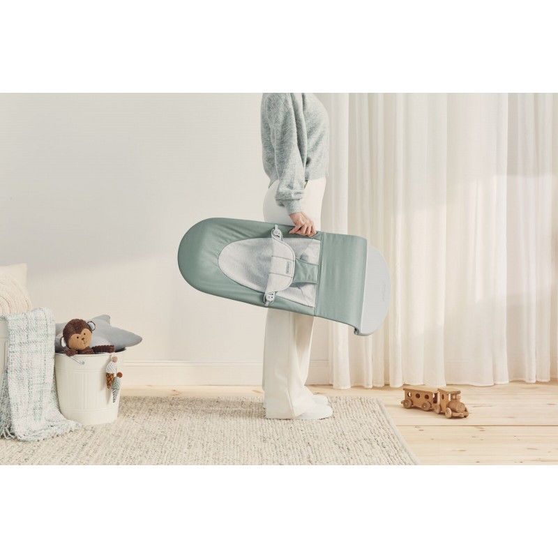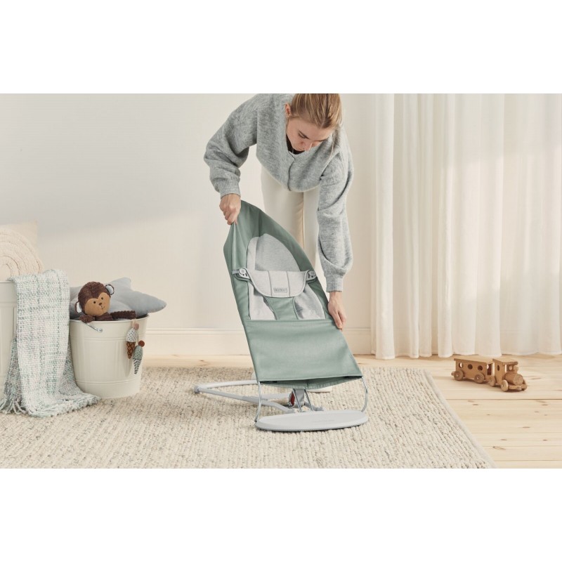 BabyBjorn Balance Soft - leżaczek, bujaczek, krzesełko | Woven Jersey Jasnoszałwiowy/Szary