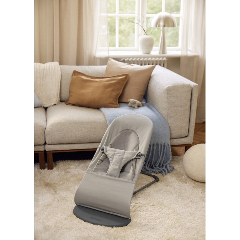 Dzięki dwustronnemu poszyciu leżaczek BABYBJÖRN Bliss może być użytkowany zarówno jako leżaczek jak i fotelik. Leżaczek jest idealnym rozwiązaniem od okresu niemowlęcego do momentu, w którym dziecko nauczy się stabilnie siedzieć. Dla starszych, już chodzących dzieci leżaczek można łatwo przekształcić w wygodny fotelik - wystarczy zdjąć i odwrócić materiał z oparcia oraz zmienić jego stopień nachylenia.