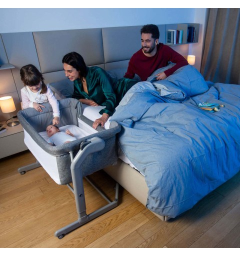 Łóżeczko Chicco Next2Me Magic Evo posiada 11 poziomową regulację wysokości, dzięki tej funkcji łóżeczko można bardzo łatwo dopasować do większości łóżek. Składane nóżki pozwalają na dopasowanie do łóżek wyposażonych w szuflady lub bez szuflad.
