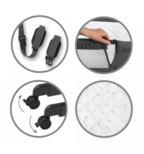 W pierwszych dniach dla maluszka najważniejsza jest wygoda i komfort, dlatego łóżeczko Snuzzy zostało wyposażone w wygodny materac o grubości 2,5 cm. Zapinaną na zamek poszewkę materaca można bez trudu zdjąć i wyprać, a poszycie wyczyścić wilgotną ściereczką.