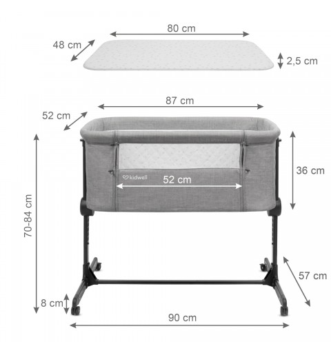 Kidwell Snuzzy - łóżeczko dostawne | Light Gray