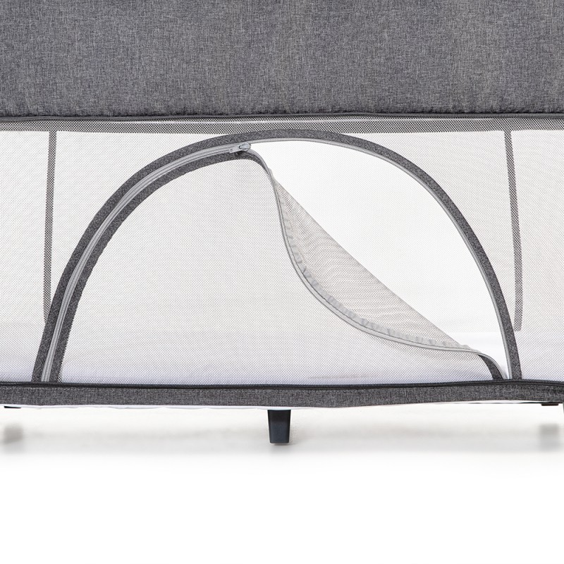 Dzięki niezwykłej funkcji uchylanego boku, łóżeczko Cloud można w wygodny sposób dostawić do łóżka rodziców. Spokojny sen maluszka oraz komfort jego opiekunów, to najważniejsze kwestie po pojawieniu się nowego członka rodziny. Ułatwienie opieki i pielęgnacji od pierwszych dni życia stają się dzięki intuicyjnym rozwiązaniom bezproblemowe. Bok łóżeczka w szybki sposób można odpiąć przy pomocy suwaków i zawinąć, tworząc wygodny dostęp do dziecka o każdej porze dnia lub nocy. Jeśli funkcja przestaje być potrzebna w miarę jak dziecko rośnie, odwijamy materiał i zapinamy bok do pozycji wyjściowej.