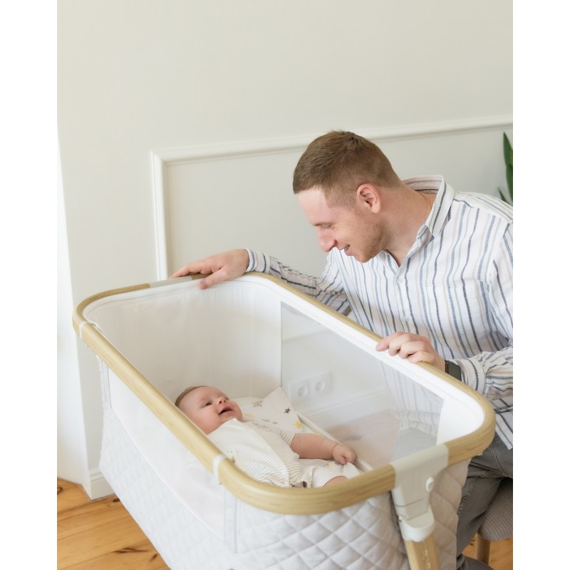Pasy do przymocowania łóżeczka z łóżkiem rodzica wchodzą w skład zestawu.