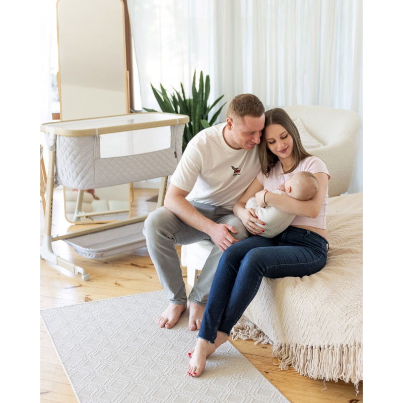 Dzięki kółkom łóżeczko można łatwo przemieszczać, dzięki czemu dziecko zawsze znajduje się w polu widzenia rodziców.