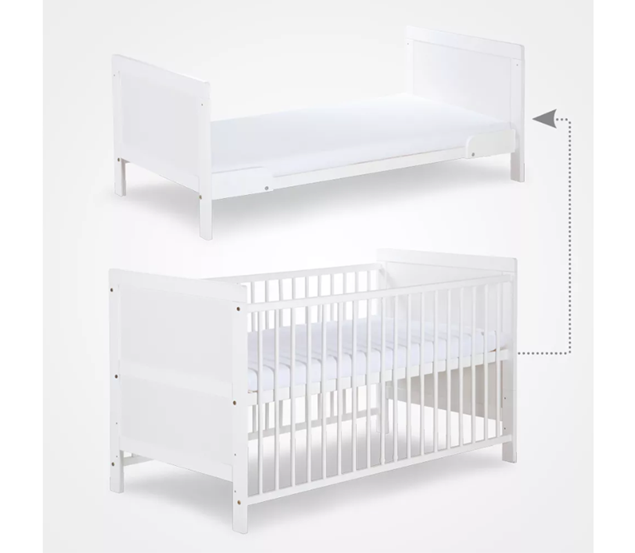 Klupś Kompakt - łóżeczko dziecięce, drewniane z funkcją tapczanika, szuflada, komoda | Biały