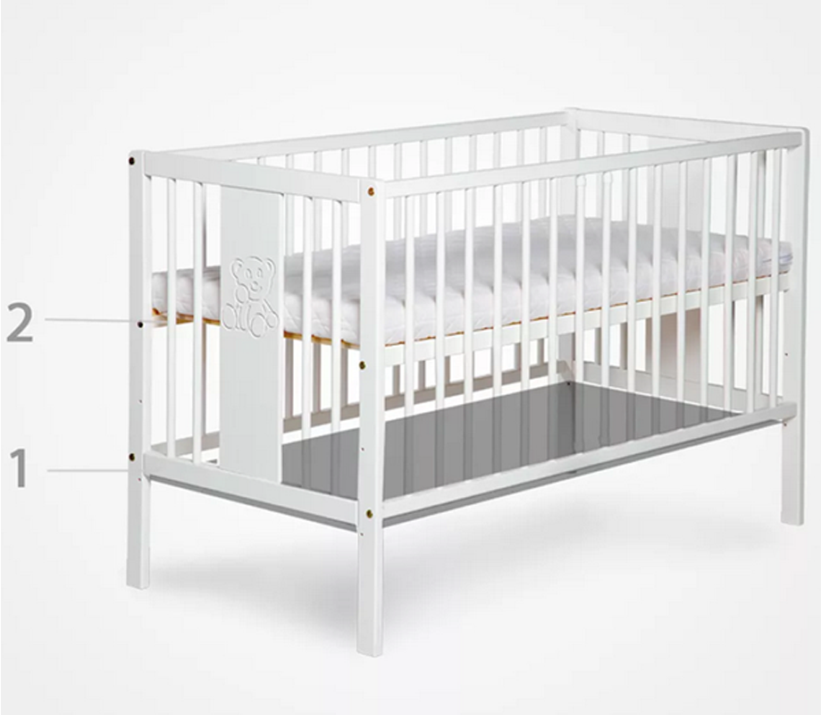 - Dno łóżka: Między listwami dna znajdują się wolne przestrzenie dzięki czemu powietrze może cyrkulować cały czas. Łatwość obiegu powietrza w materacu przede wszystkim pozwoli utrzymać jego higienę, a także zachowa jego właściwości. Wykonany w 100% z drewna sosnowego pochodzącego z polskich lasów. Element ten jest chyba najbardziej narażony na obciążenia. Intensywne zabawy w łóżeczku muszą odbywać się bez niespodzianek, dlatego zadbaliśmy o to żeby dno wytrzymało długie lata.