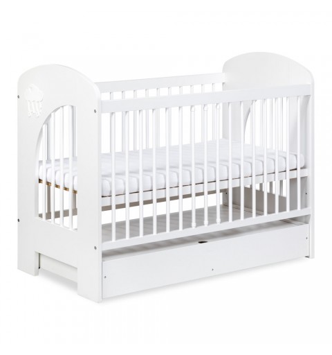 Klupś Nel Chmurka - łóżeczko dziecięce z szufladą, drewniane 120x60 | Biały