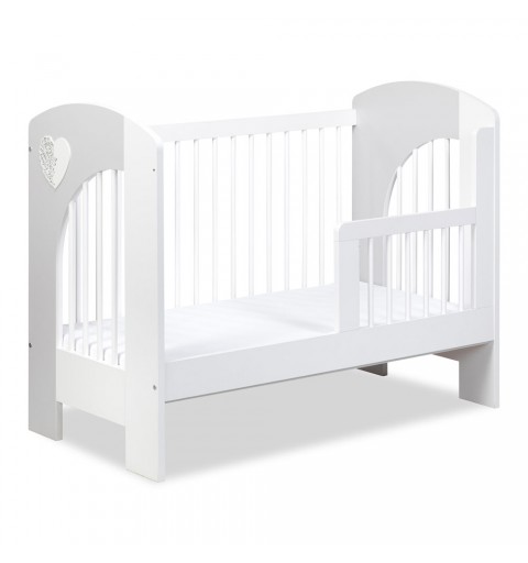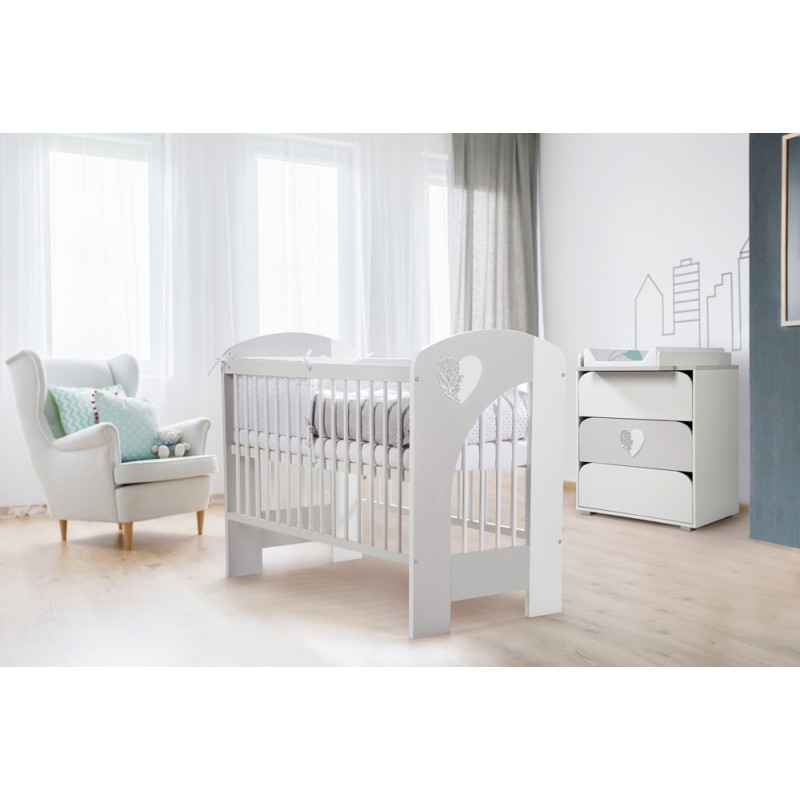 Klupś Nel Serce - łóżeczko dziecięce, tapczanik, szuflada drewniane 120x60 | Biały / Popiel