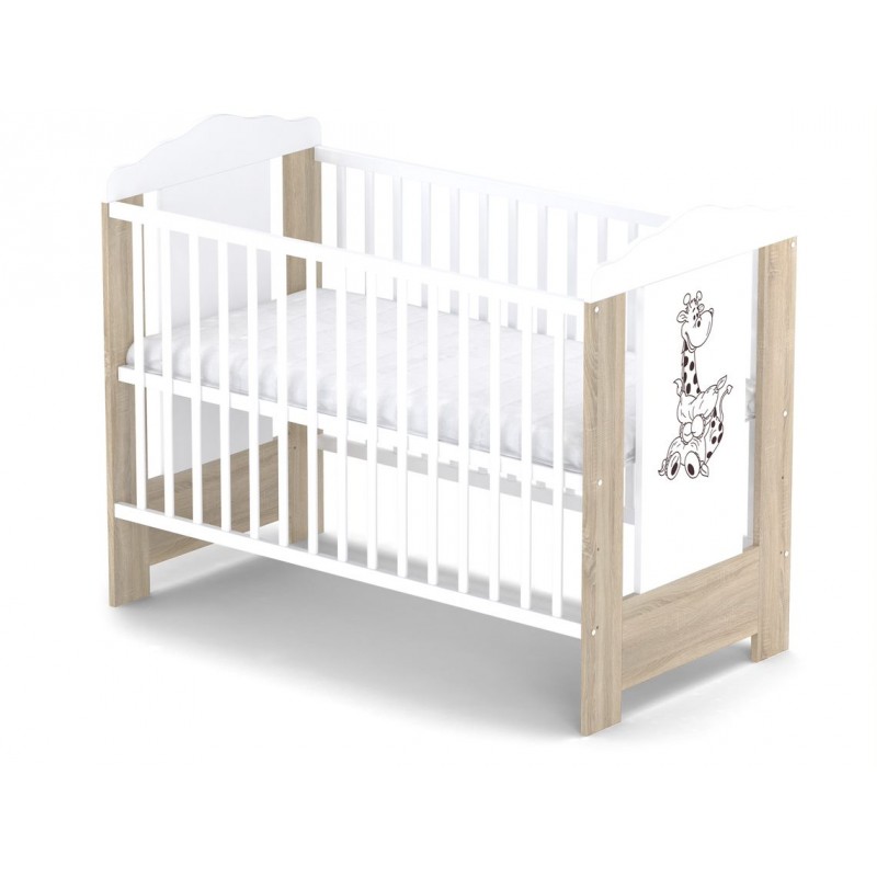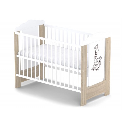 Skrzat Ella - łóżeczko dziecięce, drewniane 120x60 | Dąb sonoma / Biały