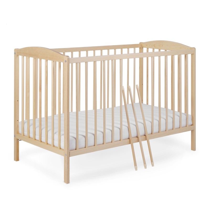 - Dno łóżka: Między listwami dna znajdują się wolne przestrzenie dzięki czemu powietrze może cyrkulować cały czas. Łatwość obiegu powietrza w materacu przede wszystkim pozwoli utrzymać jego higienę, a także zachowa jego właściwości. Wykonany w 100% z drewna sosnowego pochodzącego z polskich lasów. Element ten jest chyba najbardziej narażony na obciążenia. Intensywne zabawy w łóżeczku muszą odbywać się bez niespodzianek, dlatego zadbaliśmy o to żeby dno wytrzymało długie lata.