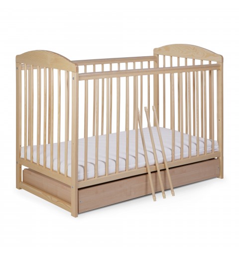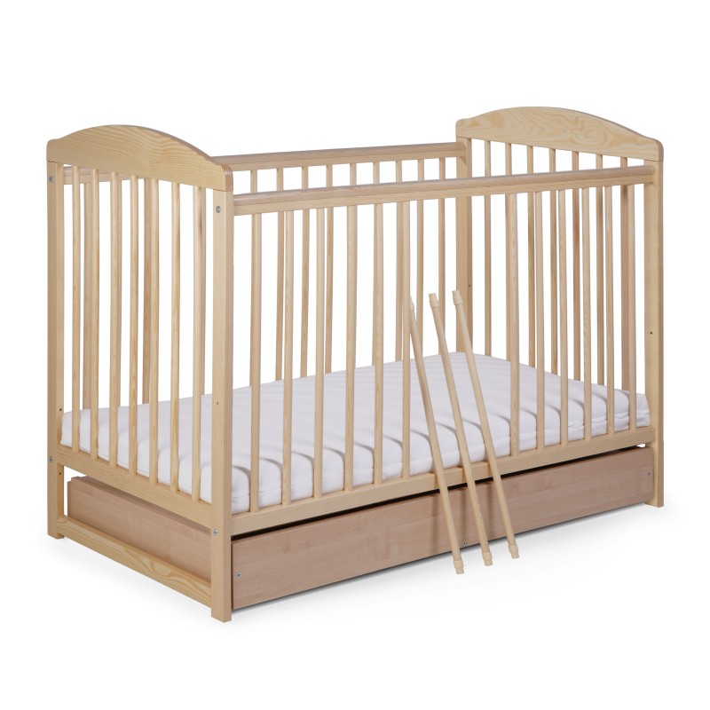 -3 wyjmowane szczebelki, umożliwiające starszym dzieciom po ich wyjęciu swobodne wychodzenie i wchodzenie do łóżeczka.