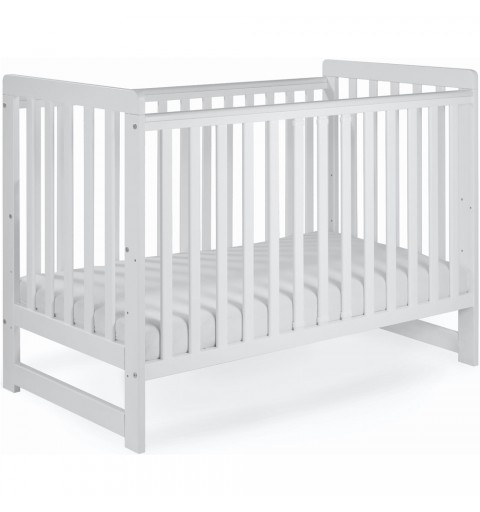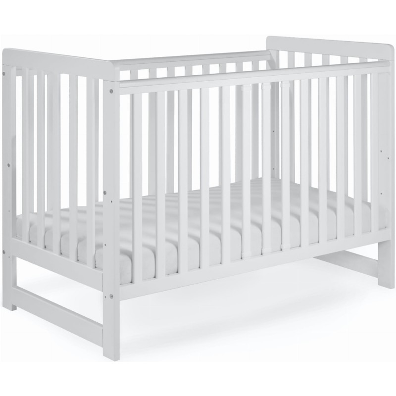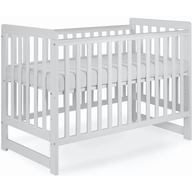 Łóżeczko posiada płaskie szczebelki o szerokości 34 mm. oraz pozaokrąglane krawędzie listew.