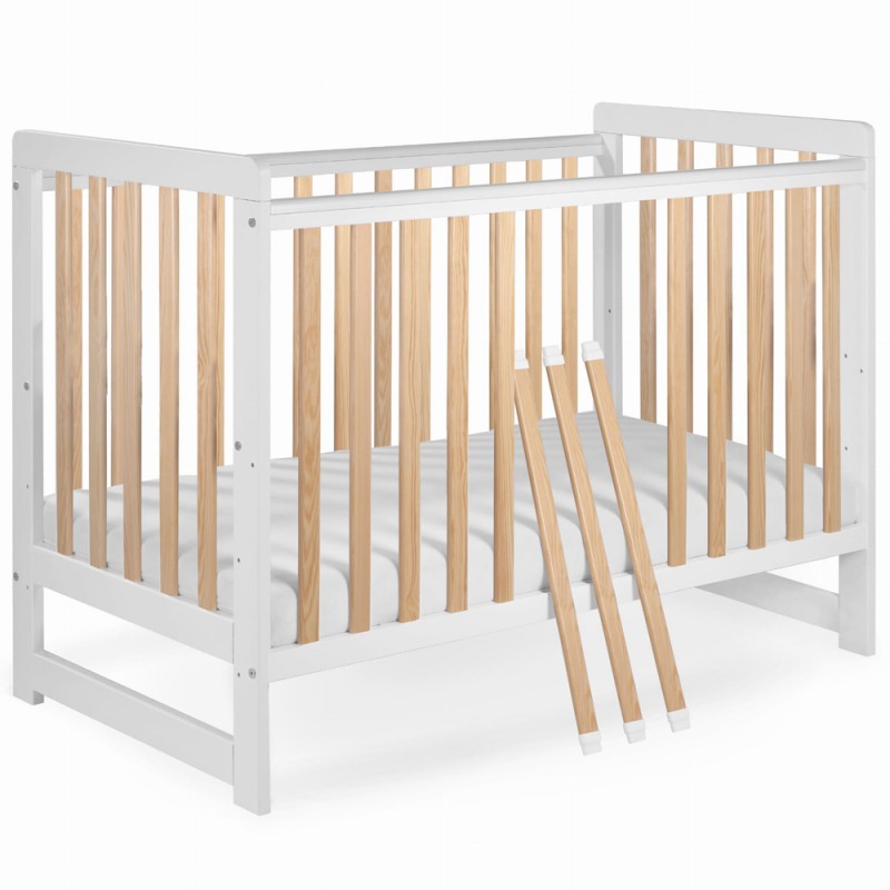 -3 wyjmowane szczebelki, umożliwiające starszym dzieciom po ich wyjęciu swobodne wychodzenie i wchodzenie do łóżeczka.