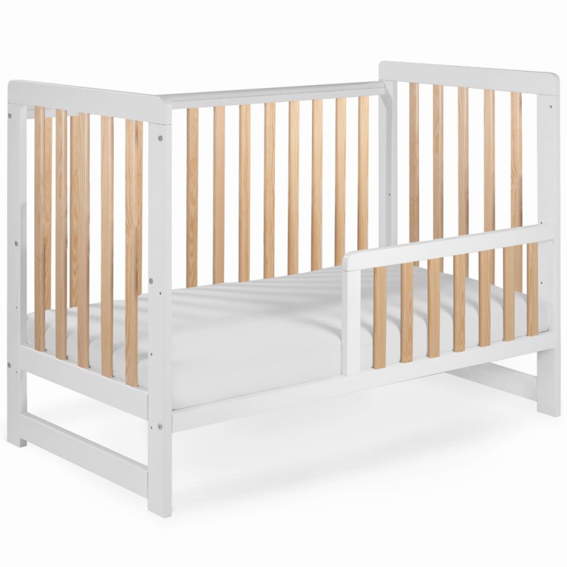 Tomi 22 - łóżeczko dziecięce z funkcją tapczanika, drewniane 120x60 | Biały Sosna