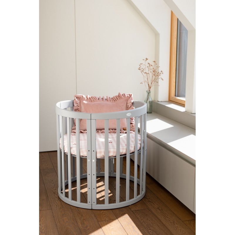 Zainwestuj w najwyższy komfort dla swojego maluszka. Przedstawiamy owalne łóżeczko dla niemowląt, które stanowi synonim solidności, elegancji oraz funkcjonalności, a także świetnego designu. Zostało wyprodukowane z najlepszych materiałów, gwarantujących bezpieczeństwo w każdym calu. Konstrukcja jest stabilna, a drobne elementy nie są łatwo dostępne dla dziecka. Oferowany model to łóżeczko dla dziecka składające się aż z 7 ukrytych części – łóżka małego, dużego, przewijaka, stoliczka i dwóch krzesełek, a także kojca. Jest efektem wielu lat pracy oraz wyrazem naszego doświadczenia, które pozwoliło na stworzenie tak funkcjonalnego produktu. Wiemy bowiem, na co zwracać uwagę podczas tworzenia łóżeczek dziecięcych i nie tylko! Przekonaj się, że ten mebel będzie idealny dla Twojego dziecka.
