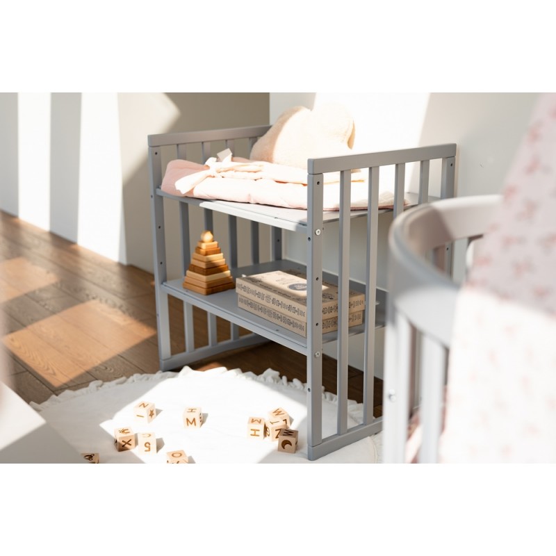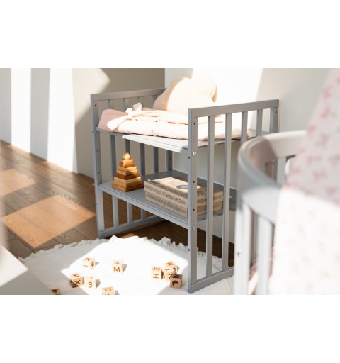W pierwszych chwilach życia malucha łóżeczko może pełnić rolę dostawki, dzięki czemu będziesz przy nim blisko przez cały czas. Regulowana wysokość dostawki pozwala z łatwością dopasować ją do każdego łóżka, co ułatwia bliski kontakt matki z dzieckiem przez całą noc. Podstawowa konfiguracja umożliwia też stworzenie łóżeczka dla niemowlaka oraz praktycznego przewijaka, co z pewnością przyda się w każdej sypialni młodego rodzica.