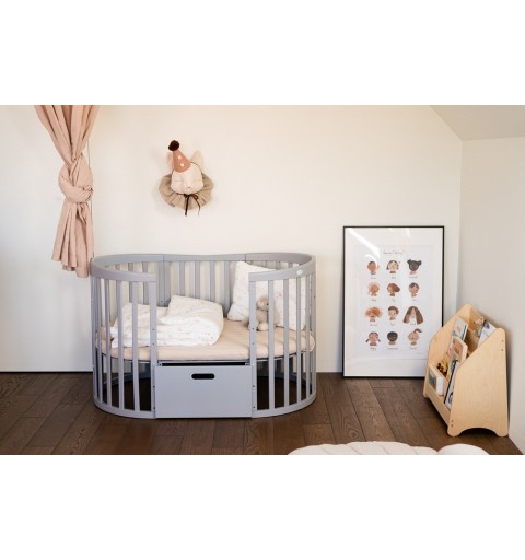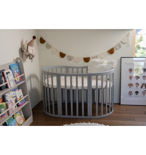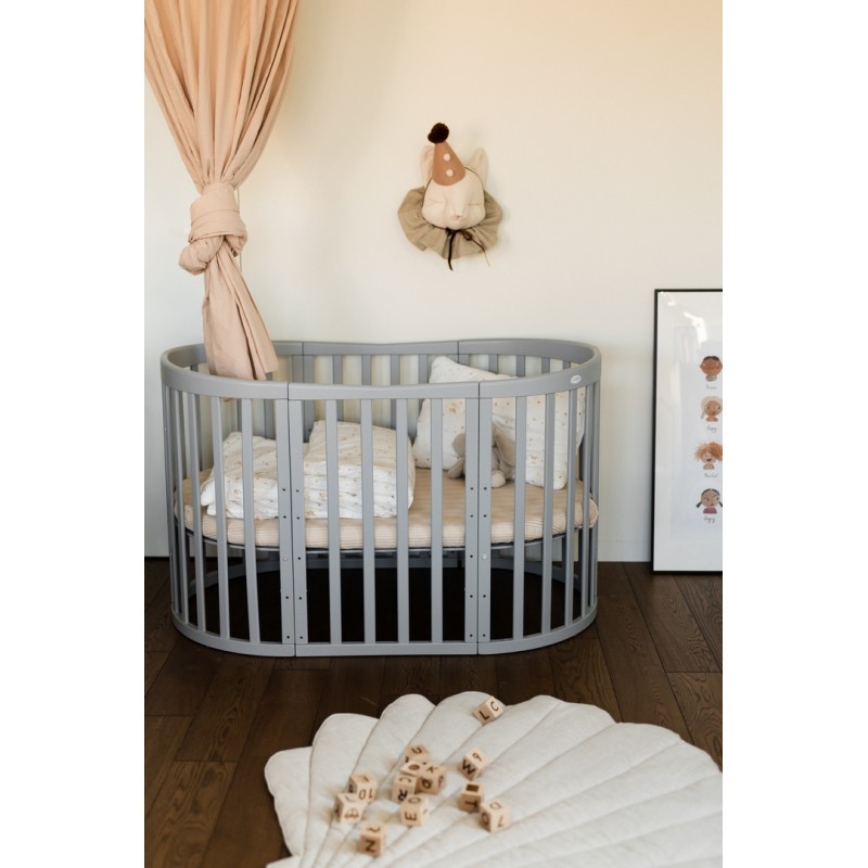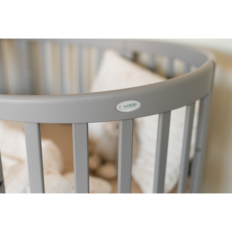 Waldin - łóżeczko drewniane owalne z materacem 7w1 | Szary
