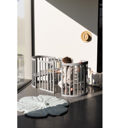 Gdy Twoje dziecko będzie już stabilnie wstawać i eksplorować otaczającą go przestrzeń, łóżko będzie pełnić rolę bezpiecznego kojca. Możesz go ustawić w salonie i przez cały czas mieć oko na zabawę swojego malucha. Konfiguracja łóżka z otwartą barierką i podłogą na ostatnim poziomie sprawdzi się jako łóżeczko dla starszego dziecka, tak aby miało możliwość samodzielnego wejścia i wyjścia z łóżeczka. Ta konfiguracja świetnie sprawdzi się podczas nauki spania we własnym łóżku.