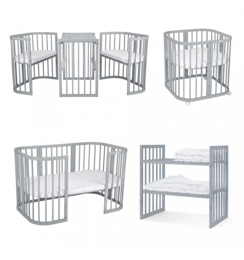 Waldin - łóżeczko drewniane z materacem 7w1 | Szare