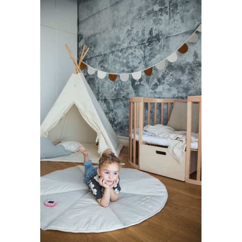 Gdy Twoje dziecko będzie już stabilnie wstawać i eksplorować otaczającą go przestrzeń, łóżko będzie pełnić rolę bezpiecznego kojca. Możesz go ustawić w salonie i przez cały czas mieć oko na zabawę swojego malucha. Konfiguracja łóżka z otwartą barierką i podłogą na ostatnim poziomie sprawdzi się jako łóżeczko dla starszego dziecka, tak aby miało możliwość samodzielnego wejścia i wyjścia z łóżeczka. Ta konfiguracja świetnie sprawdzi się podczas nauki spania we własnym łóżku.