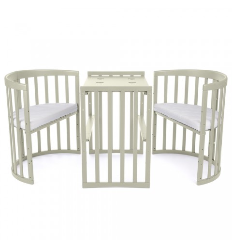 - latach jako miejsce do spania i stoliczek wraz z krzesełkami, z możliwością regulacji poziomu blatu oraz wysokości siedziska.