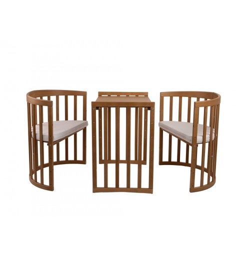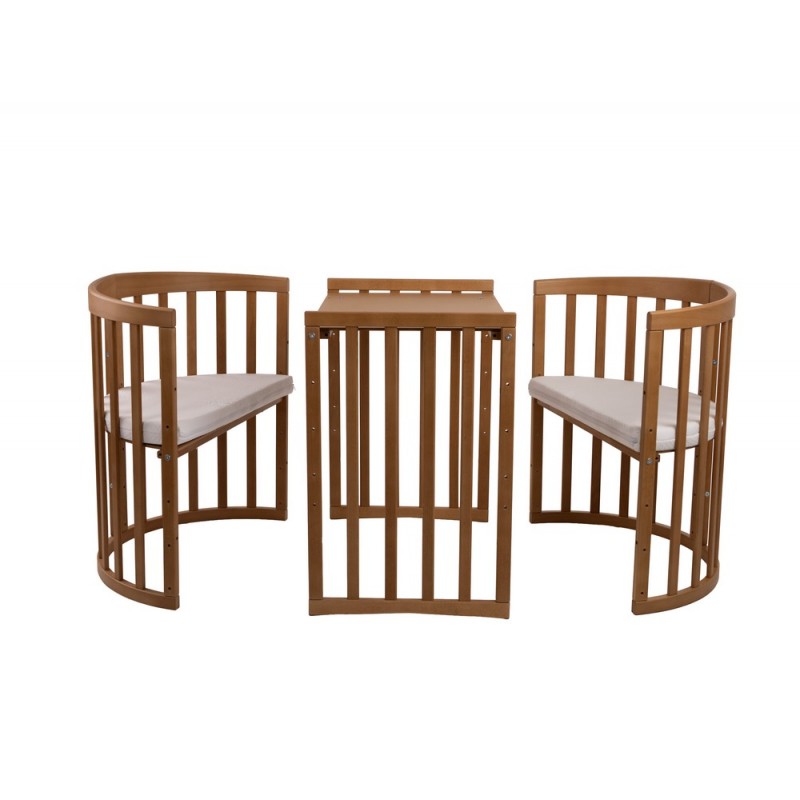 - latach jako miejsce do spania i stoliczek wraz z krzesełkami, z możliwością regulacji poziomu blatu oraz wysokości siedziska.