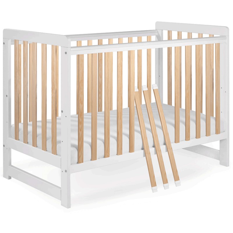 3 wyjmowane szczebelki, umożliwiające starszym dzieciom po ich wyjęciu swobodne wychodzenie i wchodzenie do łóżeczka.
