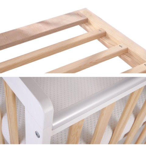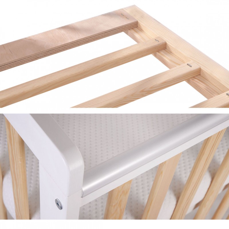 -osłonki na długich bokach chronią łóżeczko przed mechanicznymi uszkodzeniami np. w czasie ząbkowania dziecka. Sprawiają, że łóżeczko będzie nas długo cieszyć estetycznym wyglądem.