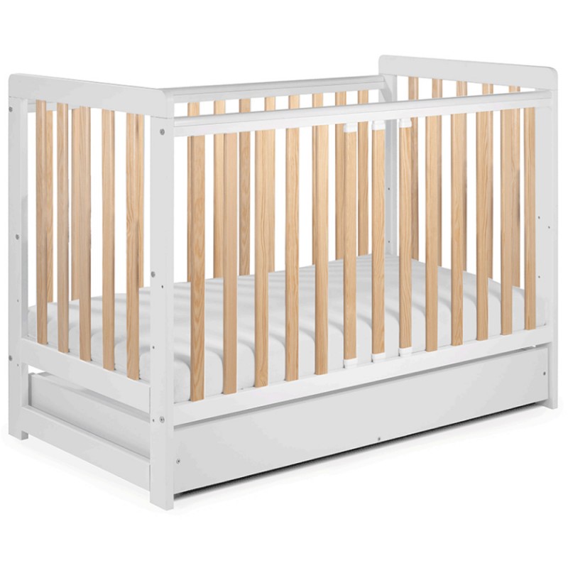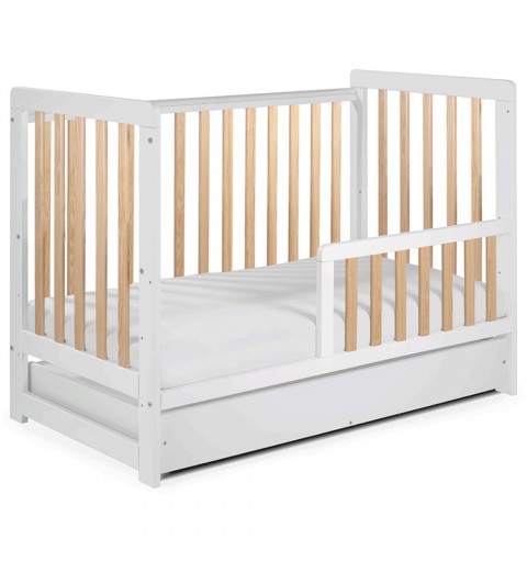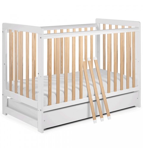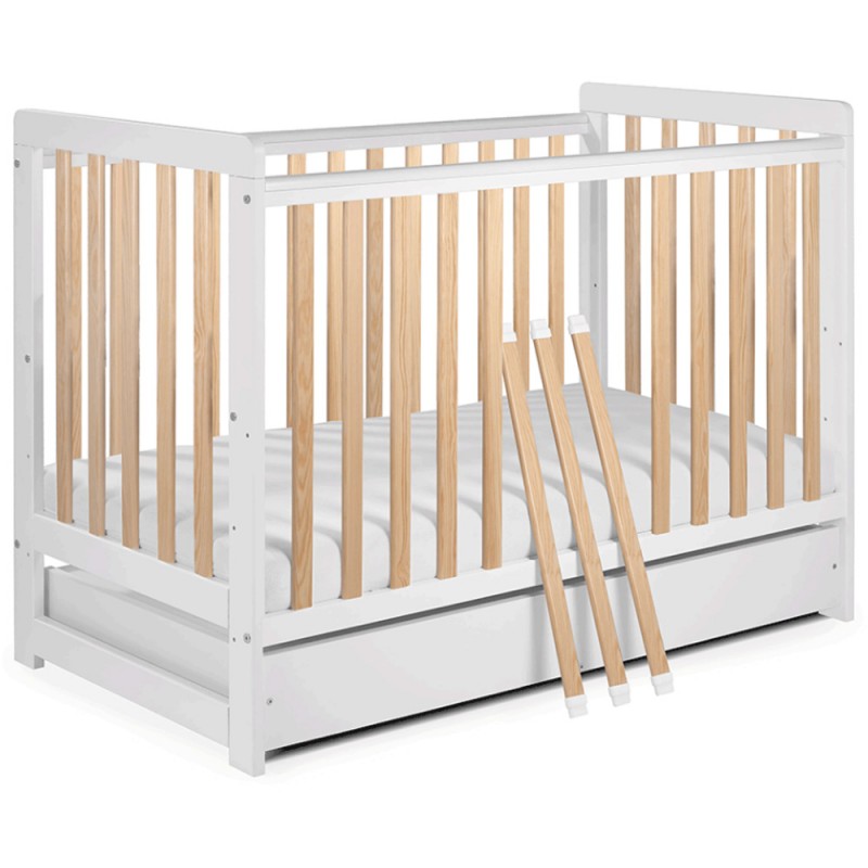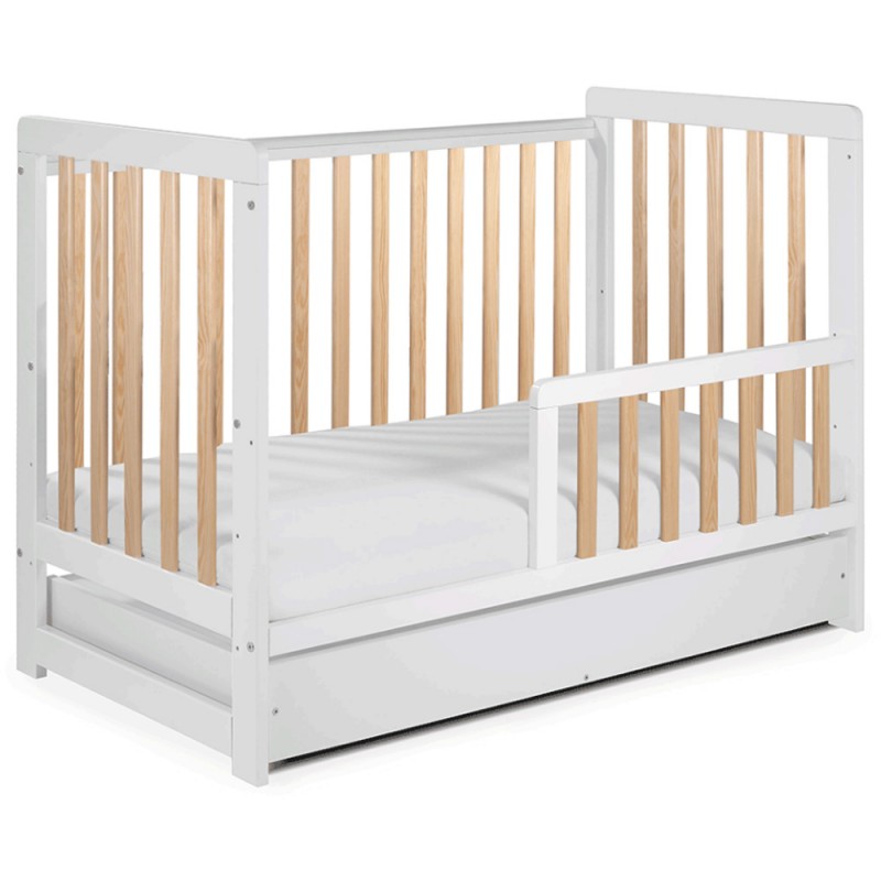 Tomi 22 - łóżeczko dziecięce z funkcją tapczanika i szufladą, drewniane 120x60 | Biały Buk
