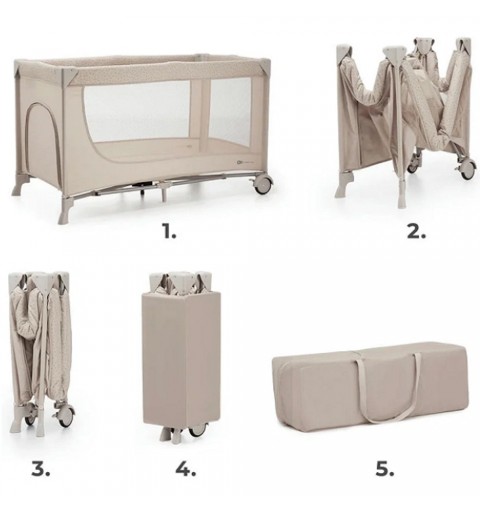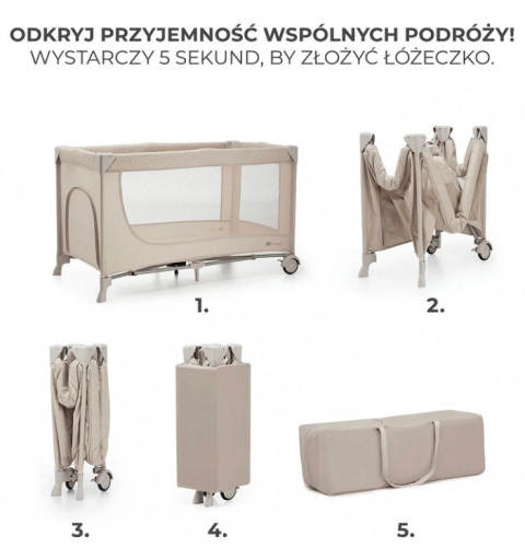 JOY 2 złożysz w zaledwie 5 sekund - kompaktowe rozmiary pozwolą Ci wziąć je ze sobą na każdy wyjazd. Podłoga łóżeczka jest wypełniona specjalnym materiałem, dzięki czemu nie musisz dokupować dodatkowego materaca. Łóżeczko posiada blokadę przed samoistnym złożeniem podczas użytkowania. Wyposażono je także w dwa kółka z hamulcem.