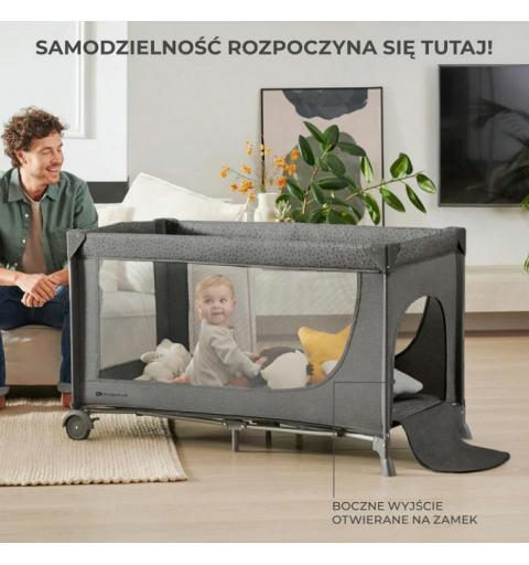 JOY 2 może być też domowym placem zabaw. Boczne wyjście, zapinane na zamek błyskawiczny, ułatwia wchodzenie i wychodzenie z łóżeczka gdy dziecko stanie się trochę bardziej samodzielne. JOY 2 wydzieli maluchowi bezpieczną przestrzeń do zabawy: będziesz mieć dziecko na oku podczas wykonywania domowych obowiązków.