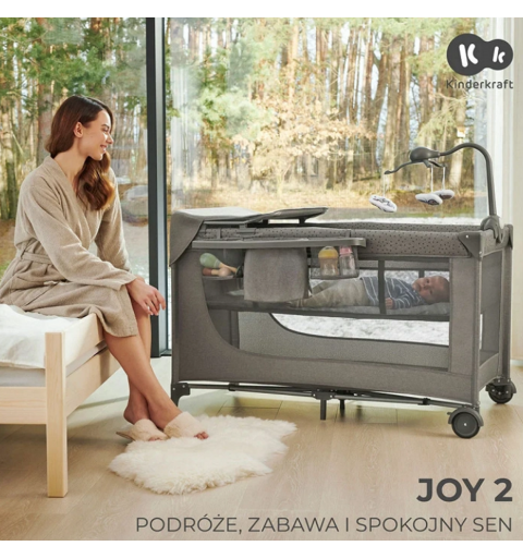 JOY 2 z akcesoriami to składane łóżeczko, pełniące aż 3 funkcje: to jednocześnie łóżeczko niemowlęce i dla starszych dzieci oraz składane łóżeczko turystyczne. To mebelek, który szybko stanie się prawdziwą ozdobą Waszego domu - piękne kolory i smukła konstrukcja wpasują JOY 2 w każde wnętrze, a praktyczne rozwiązania ułatwią Wam rodzicielstwo.