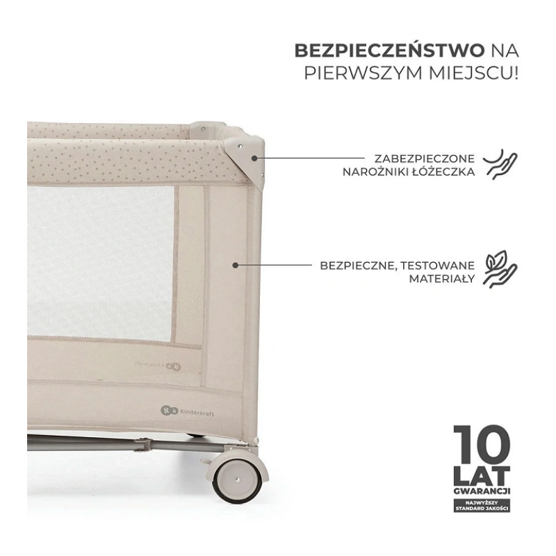 Łóżeczko JOY 2 stworzono z myślą o bezpiecznym odpoczynku dziecka: wykonano je z bezpiecznych, przetestowanych materiałów. Narożniki są zabezpieczone, a poszycie: starannie wykonane. Materiał, którym pokryte jest łóżeczko, łatwo wyczyścić – bardzo szybko schnie i się nie gniecie nawet pomimo częstego rozkładania i składania. Łóżeczko będzie się doskonale prezentować przez cały okres jego użytkowania.