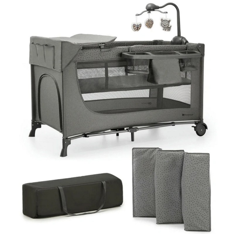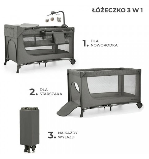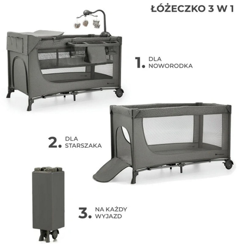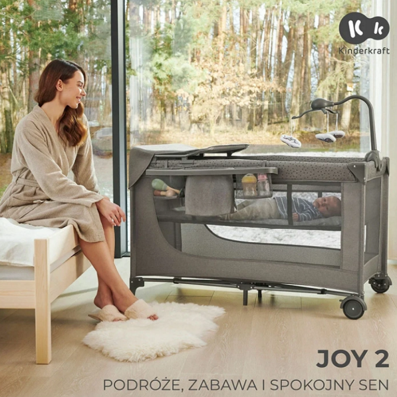 Kinderkraft Joy 2 - łóżeczko turystyczne z akcesoriami | Ciemnoszare