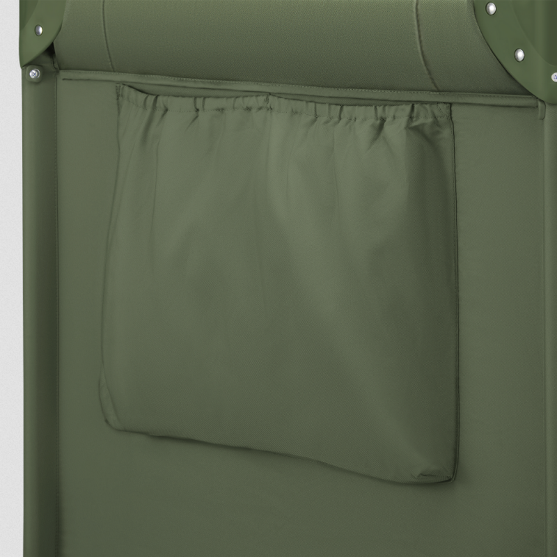 Łóżeczko posiada boczny panel zapinany na zamek, który umożliwia starszym dzieciom samodzielne wejście. Dzięki temu rodzic nie nadwyręża pleców podczas każdorazowego odkładania malucha. Zadbaliśmy również o obecność poręcznej kieszeni, w której można umieścić dodatkowe pieluszki, zabawki czy chusteczki. Do zestawu dołączona jest również torba podróżna. Łóżeczko jest wykonane z materiału o dużej gęstości splotu, który zapewnia maksymalną wytrzymałość.