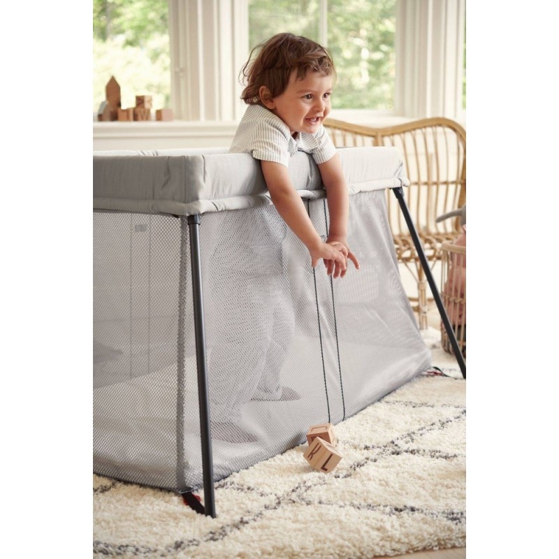 Łóżeczko turystyczne BABYBJÖRN wykonane jest z miękkiej i przewiewnej tkaniny mesh, która pozwala dziecku swobodnie oddychać, nawet jeśli twarz dziecka znajdzie się blisko boków łóżeczka. Dodatkowo siateczka ułatwia opiekunowi obserwację dziecka.