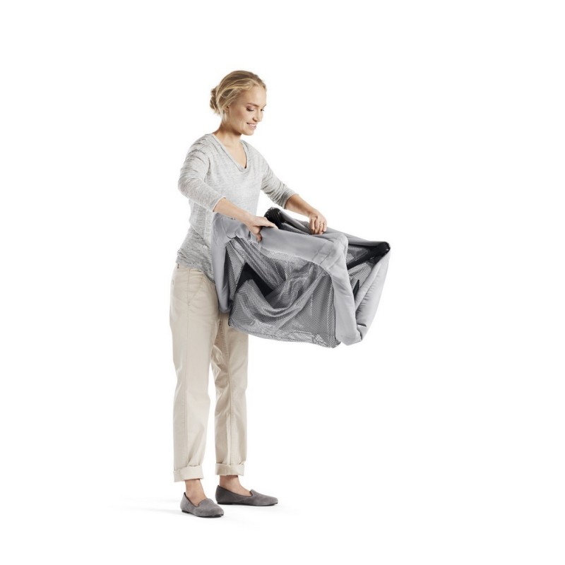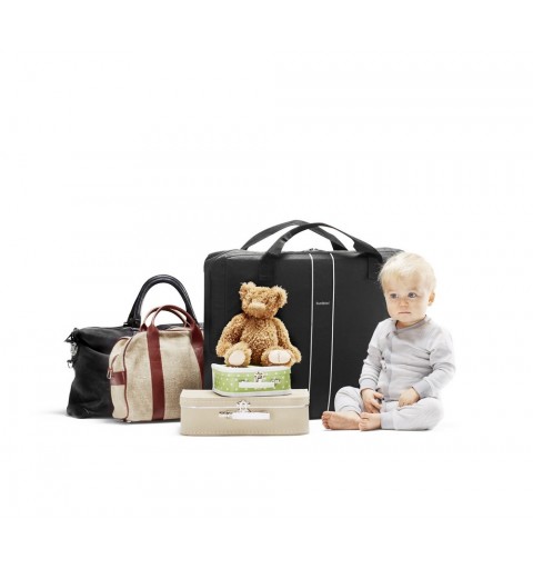 Łóżeczko podróżne BABYBJÖRN, które można rozstawić jednym prostym ruchem. Nogi rozkładają się automatycznie, a po umieszczeniu materaca powstaje stabilne łóżeczko do korzystania w domu lub w podróży. Nieużywane, można równie szybko i łatwo złożyć.