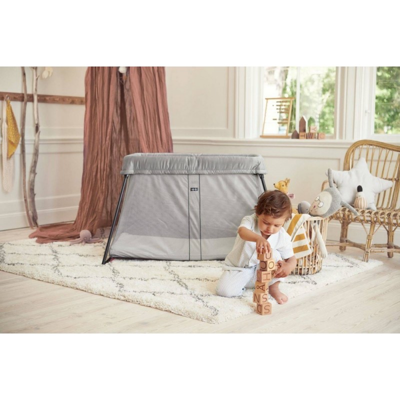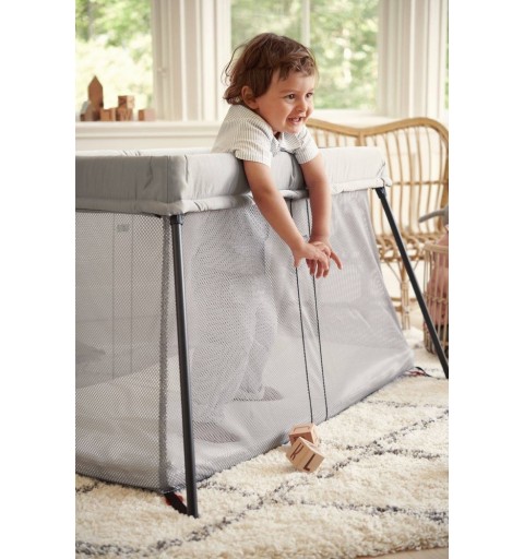 Łóżeczko turystyczne BABYBJÖRN wykonane jest z miękkiej i przewiewnej tkaniny mesh, która pozwala dziecku swobodnie oddychać, nawet jeśli twarz dziecka znajdzie się blisko boków łóżeczka. Dodatkowo siateczka ułatwia opiekunowi obserwację dziecka.