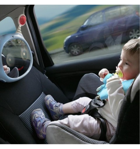 Nic się nie martw! Lusterko aktywne do samochodu Oly Baby zapewni Twojemu dziecku rozrywkę, ale i ukojenie podczas jazdy. Szerokokątne lusterko umożliwia łatwy widok na dziecko, podczas gdy dziecko cieszy się towarzystwem Oly i wieloma niespodziankami. Lusterko Oly posiada możliwość wygrywania 4 melodii i 4 rodzajów białego szumu, a także mrugania i uśmiechania się. Lusterko jest w pełni bezpieczne, przetestowane pod kątem zderzeń i jest bardzo proste w instalacji. Lusterko Oly zapewni dziecku ukojenie lub rozrywkę, a Tobie spokojną jazdę, dokądkolwiek się udasz.