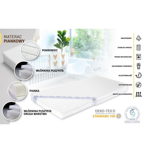 - wypełnienie materaca to pianka oraz włóknina puszysta,