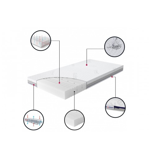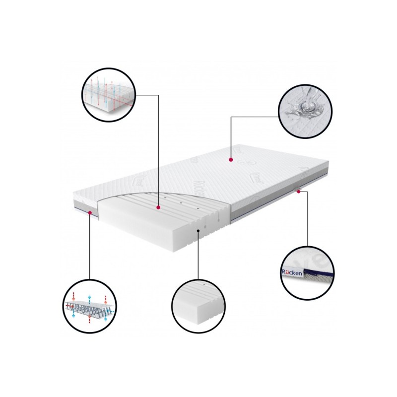 Rucken Basic to kompletny i sprawdzony materac wykonany z wysokiej jakości pianki elastycznej T-25 o średniej twardości H3. Zapewni niezakłócony i spokojny sen w komfortowych warunkach oraz zdrowy rozwój Twojego maluszka już od pierwszych dni życia.