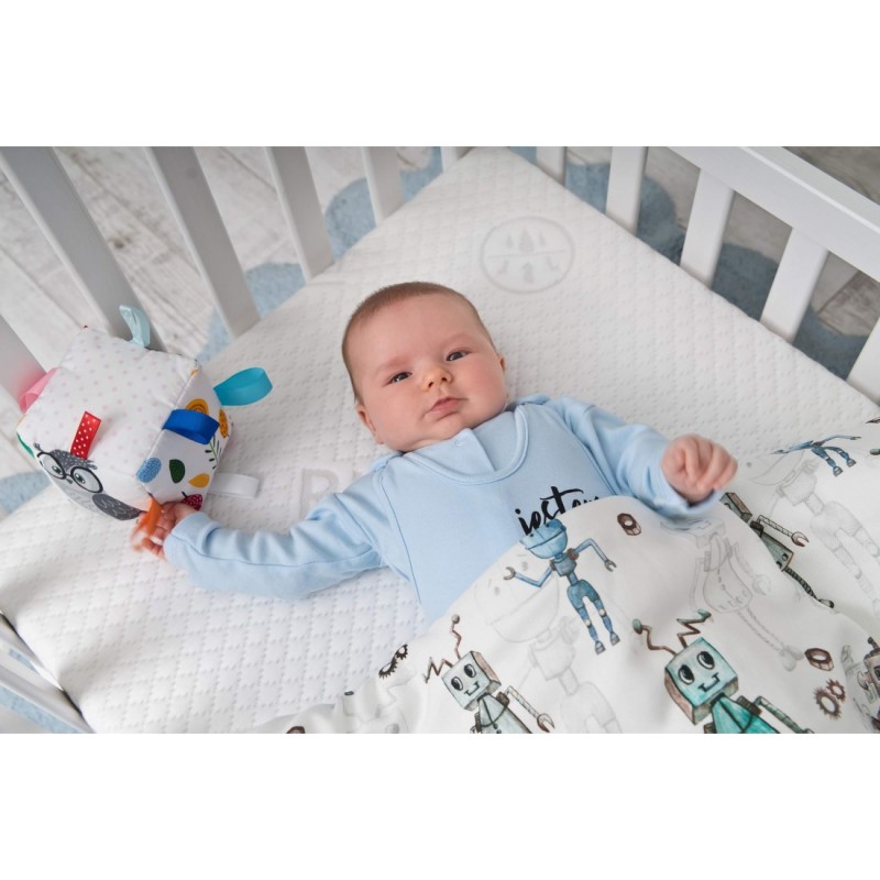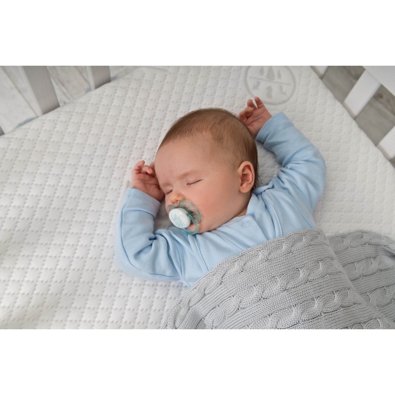 W materacu zastosowaliśmy nasz najlepszy pokrowiec wykonany ze szlachetnej dzianiny Tencel. To miękka, przyjemna w dotyku i oddychająca tkanina, która jest wykonana z celulozy pozyskiwanej z drzew. Dzięki naturalnemu pochodzeniu materiał jest odpowiedni dla najbardziej wymagającej, dziecięcej skóry. Posiada także doskonałe właściwości zarządzania wilgocią. Pochłania i oddaje do otoczenia o 50% więcej pary wodnej niż bawełna, jest przy tym wytrzymały i można go prać nawet w 60 stopniach bez obaw o utratę właściwości i zmianę rozmiaru. Unikalne cechy włókna sprawiają, że w zimne noce Twojemu maluszkowi będzie ciepło, a latem przyjemnie chłodzi. Komfortowe warunki snu i odpoczynku to przede wszystkim zdrowy rozwój.