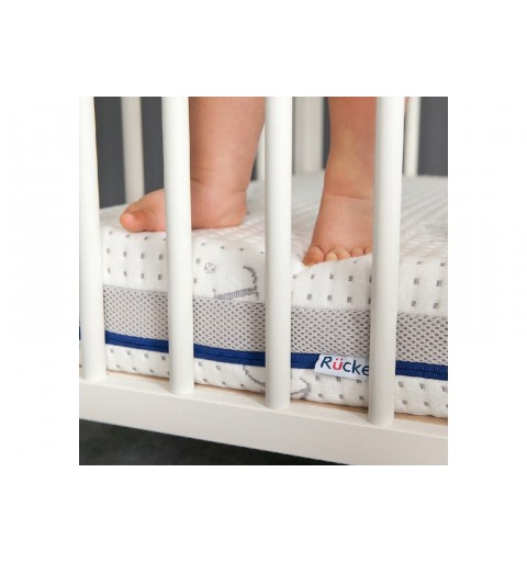 W materacach Rücken pionowe kanaliki pianki lateksowej, zintegrowane są z bardzo przewiewnym profilem wyciętym w piance PUR znajdującej się pod lateksem. System Air Pro dodatkowo zapewnia swobodny przepływ powietrza góra-dół oraz na boki, dzięki temu cały wkład materaca oddycha. Pokrowiec z włóknami TENCEL® doskonale zarządza wilgocią. Wszystko to sprawia, że ryzyko rozwoju bakterii, pleśni czy roztoczy jest ograniczone. Zmniejsza to także ryzyko pocenia się i wybudzania dziecka.