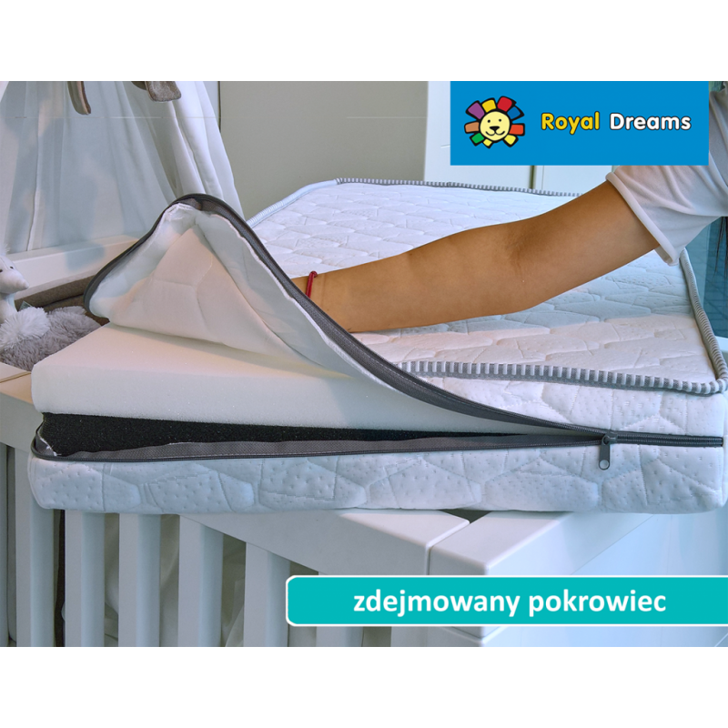 Materac został wyposażony w wielowarstwowy pokrowiec z delikatnej i trwałej z dzianiny materacowej (100% poliester), która została zbadana również pod kątem braku substancji szkodliwych zgodnie z wymaganiami certyfikatu Standard 100 by-TEX® (pod względem wymagań najbardziej rygorystycznej klasy I, czyli dla artykułów dla niemowląt i małych dzieci w wieku do 3 lat).