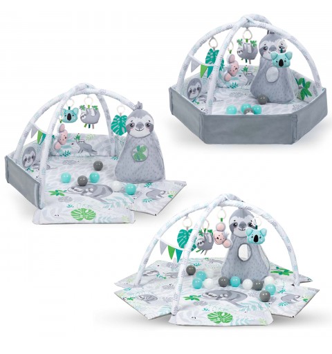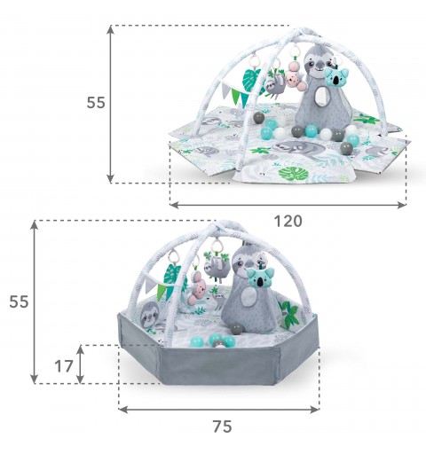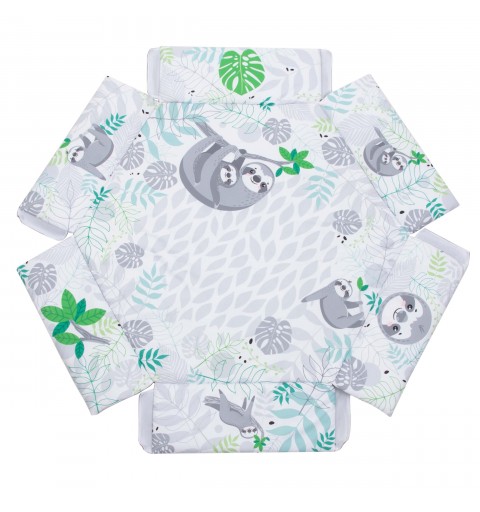 Dzięki podnoszonym brzegom mata łatwo dopasuje się do potrzeb dziecka – zmieni się w suchy basen, półotwarty kojec lub dużą, rozłożoną matę.